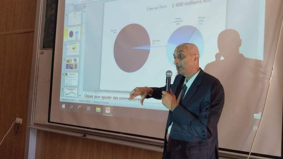محاضرة افتتاحية من تقديم الاستاذ طارق حرطاني مدير معهد العلوم كان موضوعها حول الموارد المائية .