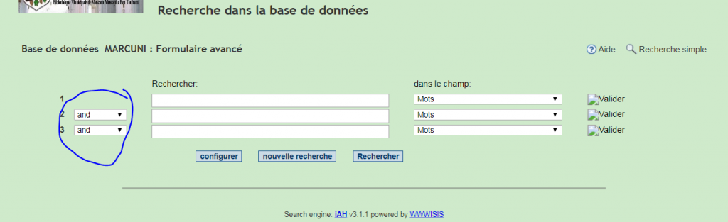 وتم انشاء صفحتين للبحث في قاعدة البيانات حسب المعايير الدولية: