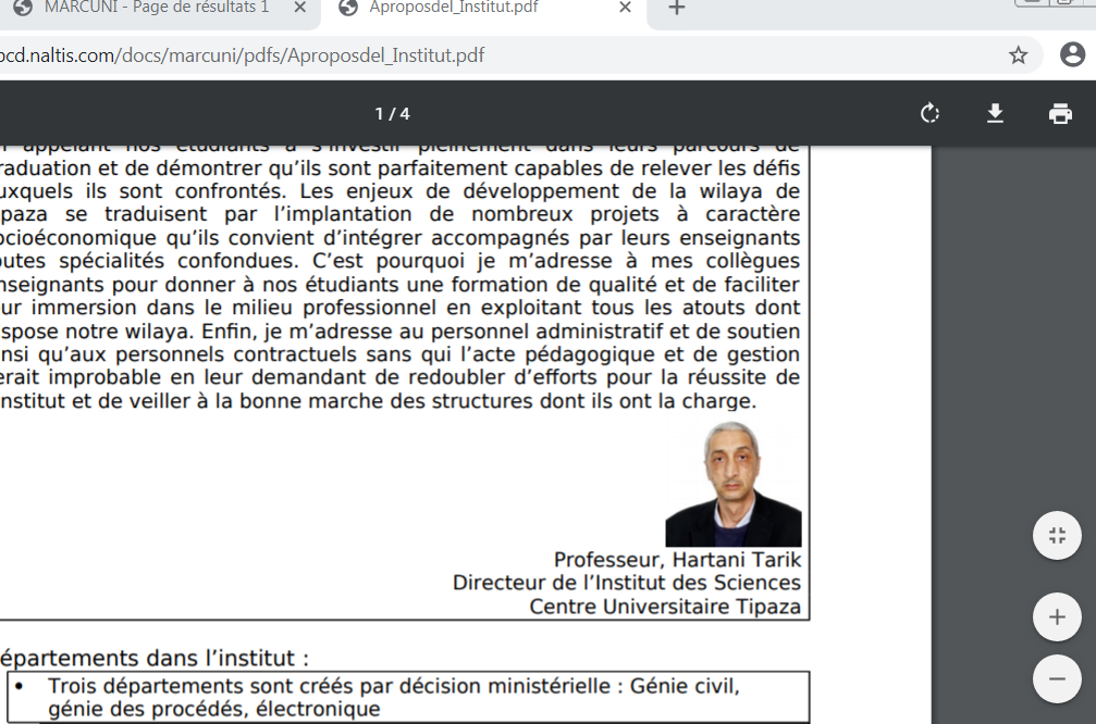 مثال على ذلك تعريف المعهد من طرف السيد مدير المعهد الأستاذ حرطاني طارق كما هو موضح في الأسفل