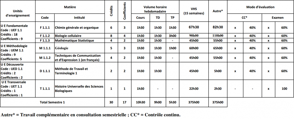 سنة أولى ليسانس علوم الطبيعة و الحياة