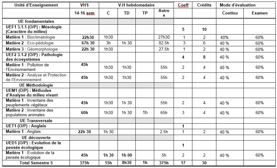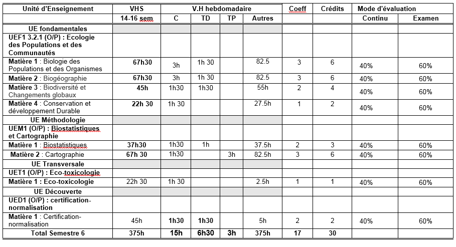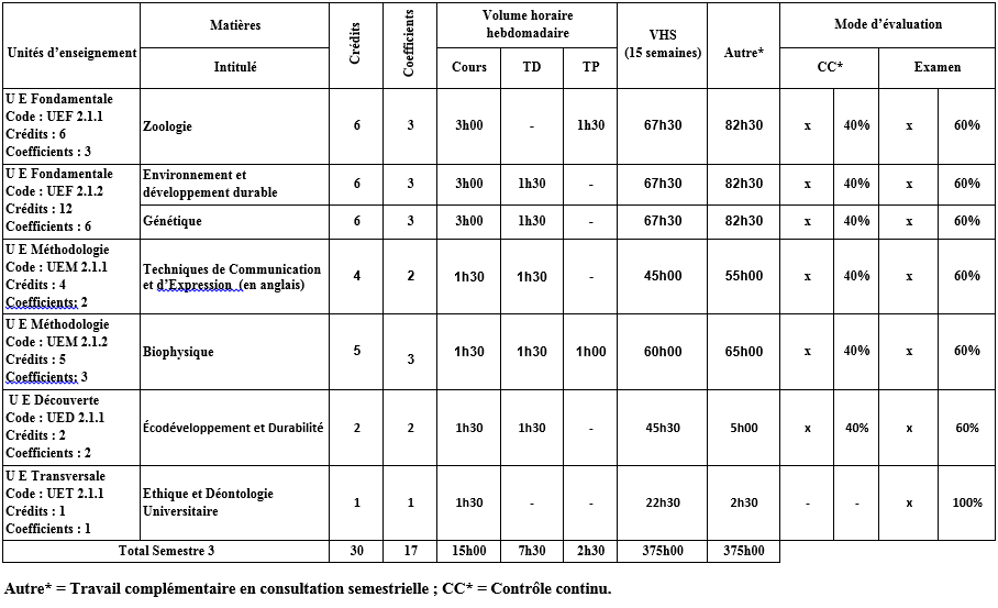 2- السنة الثالثة ليسانس تخصص علوم البيئة والمحيط
