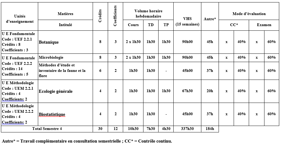 1- السنة الثانية ليسانس تخصص علوم البيئة والمحيط