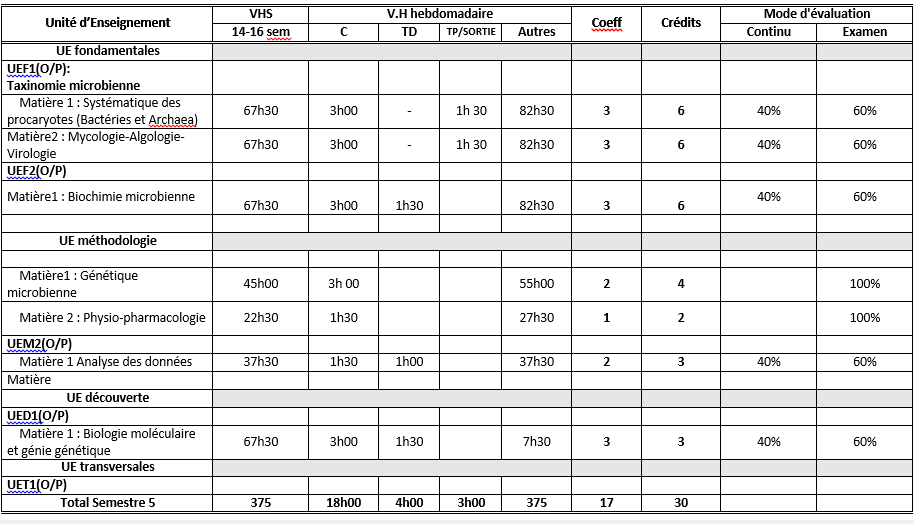 1- السنة الثانية ليسانس تخصص ميكروبيولوجيا