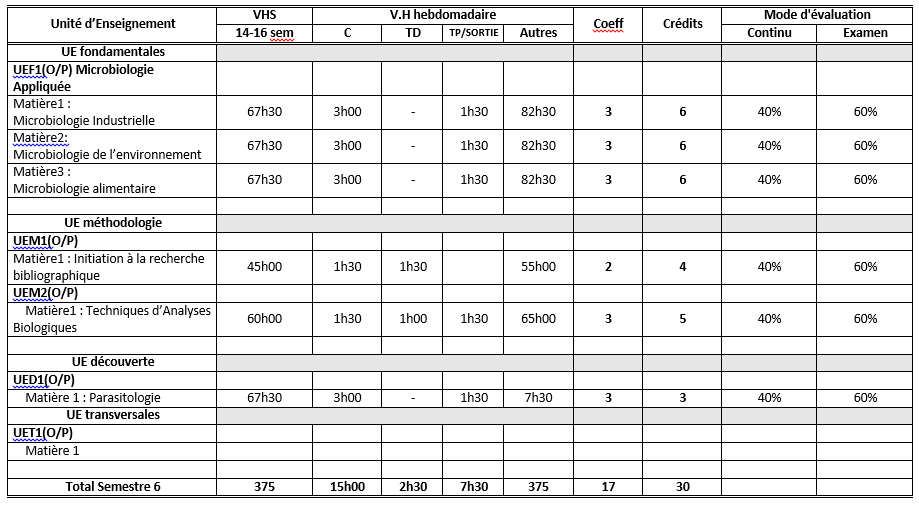 2- السنة الثالثة ليسانس تخصص ميكروبولوجيا