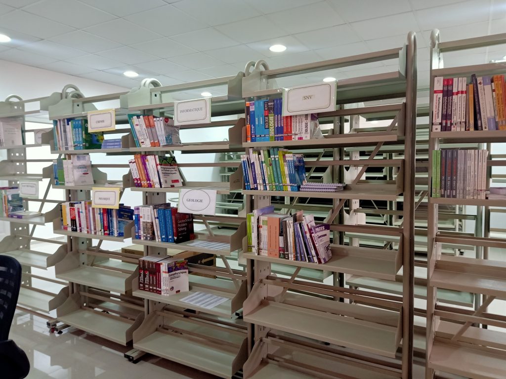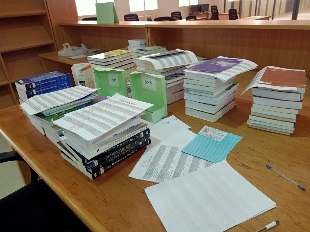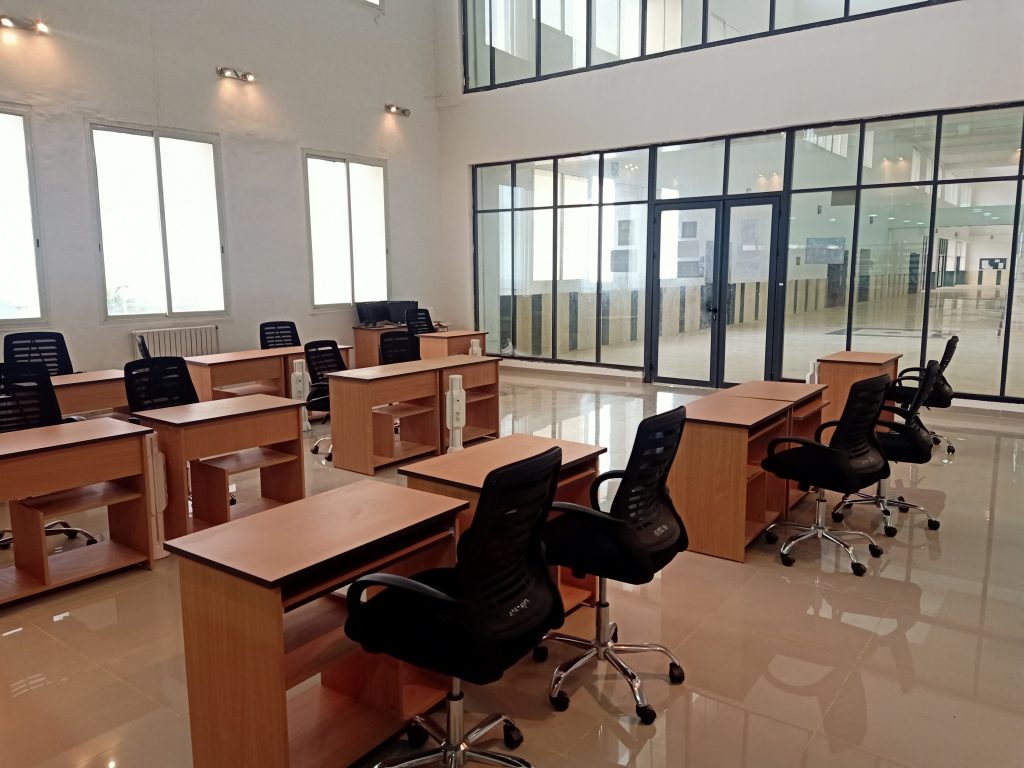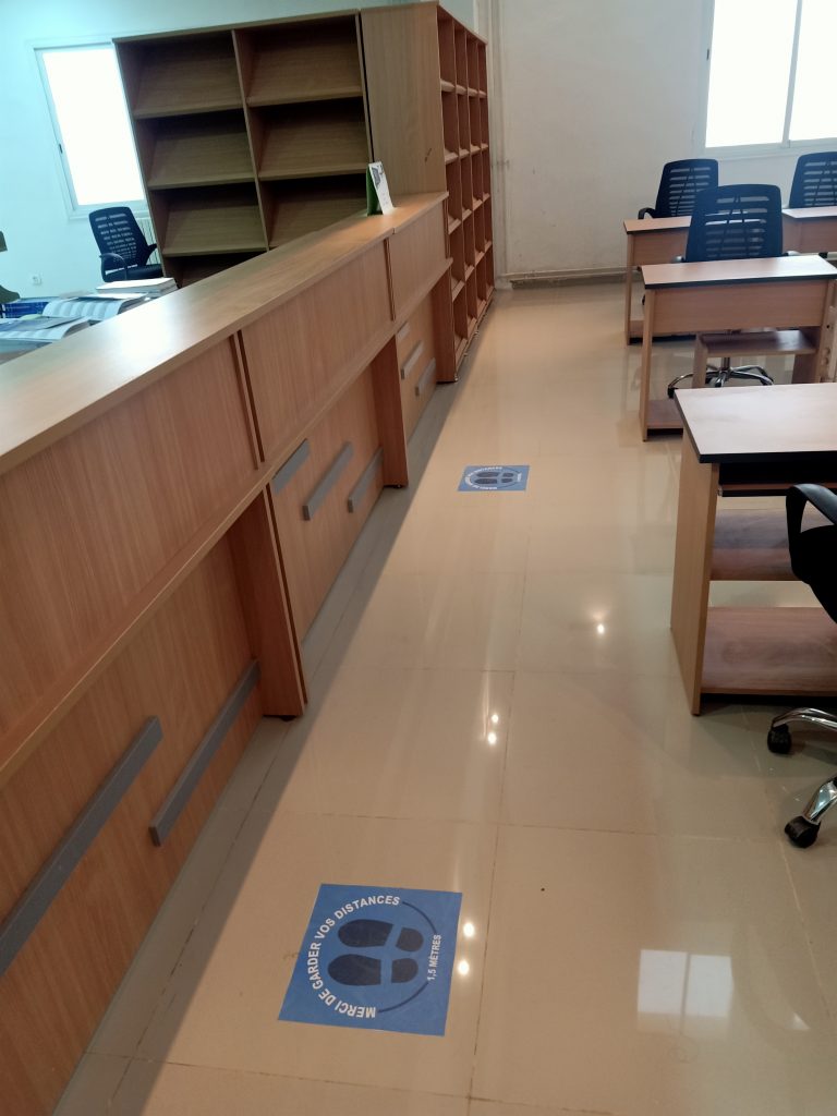 • وعلى قاعة مجهزة بطاولات فردية وكراسي للاطلاع على رصيد المكتبة، محترمين مسافة الأمان متقيدين بالإجراءات الصحية  للكوفيد 19.