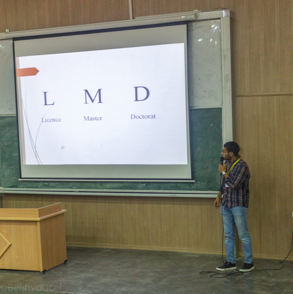 نظم نادي الهندسة والتكنولوجيا لمعهد العلوم محاضرة الأولى للتعريف بنظام التمدرس LMD لفائدة الطلبة الجدد بمشاركة مجموعة من أساتذة المعهد يوم 27 سبتمبر 2018 بمعهد العلوم.