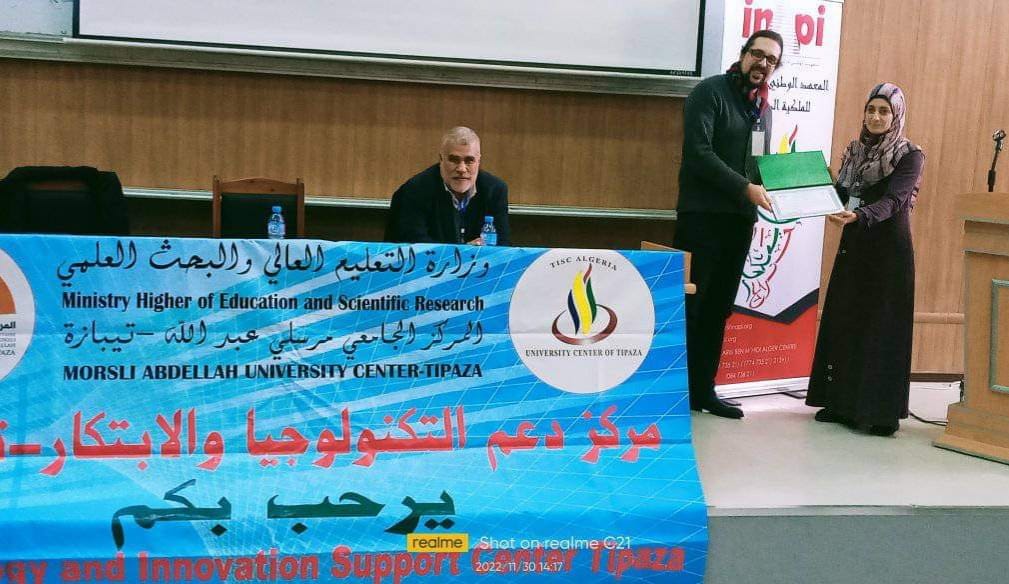 نظم مركز دعم التكنولوجيا والابتكار بالمركز الجامعي مرسلي عبد الله-تيبازة بالتنسيق مع المعهد الوطني الجزائري للملكية الصناعية يوم الأربعاء 30 نوفمبر 2022 ابتداء من الساعة 09:00 صباحا يوم تحسيسي حول أهمية حماية المشاريع الابتكارية و لابل المؤسسة الناشئة، و الطريقة الصحيحة لإيداع ملف براءة الاختراع و تسجيلها بالمعهد الوطني الجزائري للملكية الصناعية،بالإضافة إلى الدورة التكوينية لحاملي المشاريع تم تطرق إلى المراحل الأساسية من ناحية براءة الاختراع للقرار الوزاري 1275 حول شهادة مؤسسة ناشئة/شهادة براءة الاختراع،و كيفية حماية وتسجيل العلامة التجارية للمؤسسة،،أين برمجت مداخلتين:
